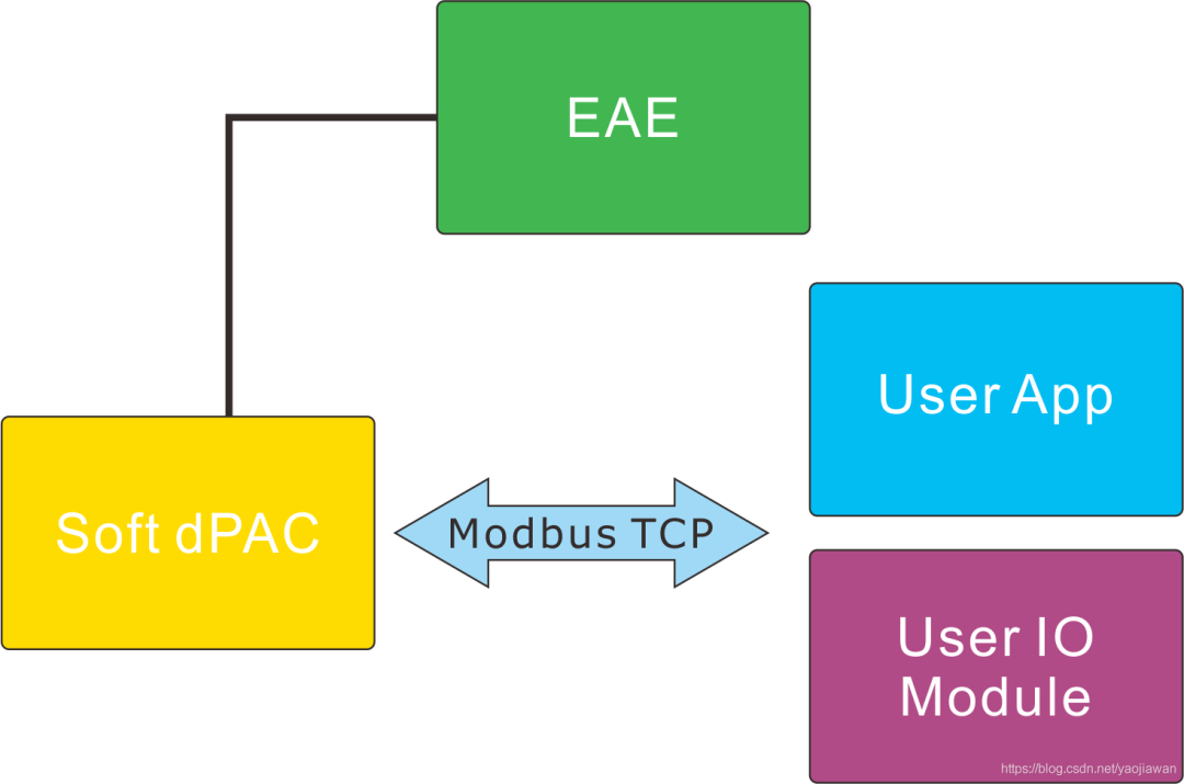 modbusTCP協議比較適合soft dPAC連接遠(yuǎn)程IO模塊,而TCP/UDP更適合於軟件交換數據。EAE 有一個NETIO功能塊提供給(gěi)用戶建立特定的TCP,UDP通信。這個功能塊意義非凡,使用戶可以實現與非EAE程序的通信。