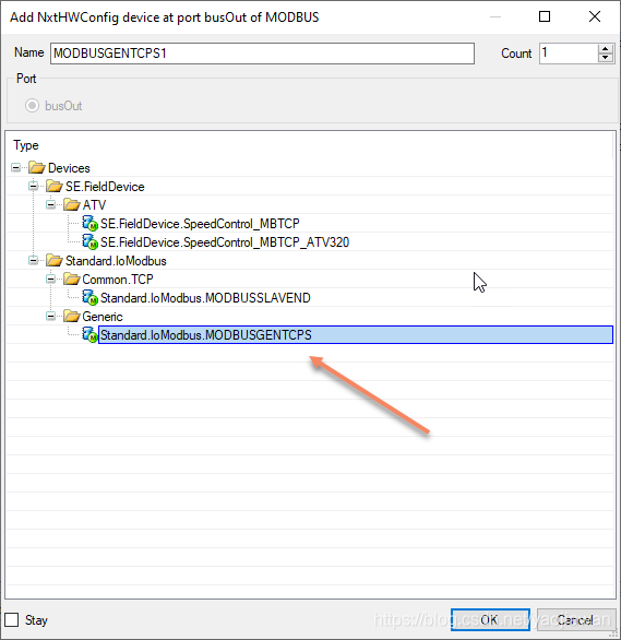 出現下麵窗口,選擇 Standard.IoModbus.MODBUS.