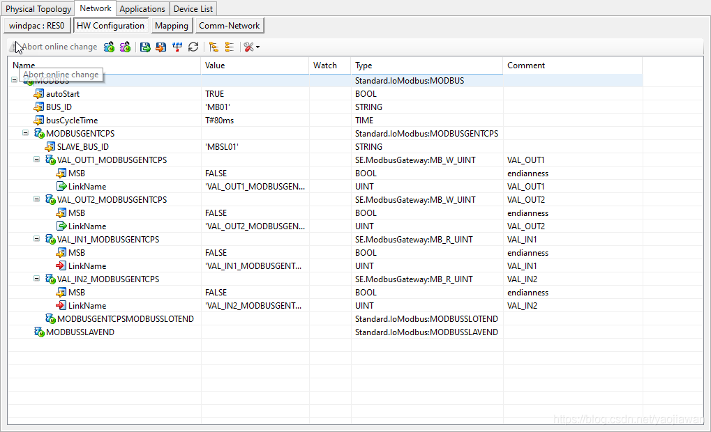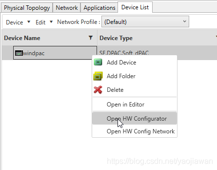 在EAE中,modbus是作為硬(yìng)件功能塊來(lái)實現(xiàn)的。需要在device List窗口中(zhōng),指定設備(bèi)擊右鍵選(xuǎn)擇 HW Configuration.