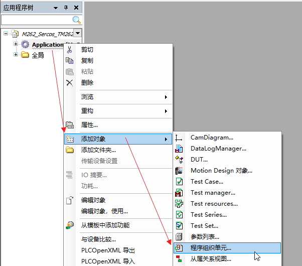 打(dǎ)開EcoStruxure軟件(jiàn),單擊(jī)【應用程序樹】→【Application】,選擇程序(xù)組織單(dān)元,如(rú)圖3所示。