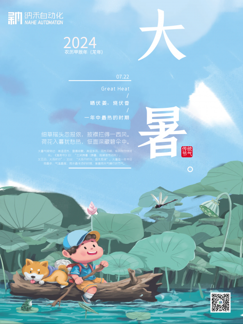 《月令七十二候集解》中說:“大暑,六月中。暑,熱也,就(jiù)熱之中分為大小,月(yuè)初為小,月中為大,今則熱氣猶大(dà)也。”大暑節氣正值“三伏(fú)天”的中伏前後,是一年中日照最猛烈、最炎熱的時候,是“上蒸(zhēng)下煮”“濕熱交蒸”到達極(jí)至的時節,古人稱之為“大者,乃炎熱之極也”。
